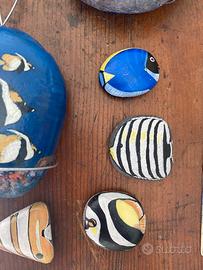 Sassi di fiune dipinti a mano con colori acrilici.