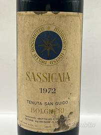 Vendo rarissima bottiglia di Sassicaia 1972, uno dei primi millesimi prodotti dalla leggendaria Tenuta San Guido. Annata storica e sempre più difficile da reperire, questa bottiglia rappresenta un pezzo importante della storia del vino italiano.