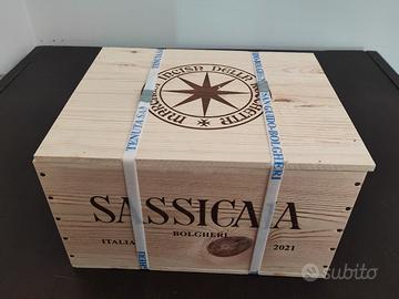Vendo 6 bottiglie Sassicaia 2021 in cassetta legno reggettata acquistata appena uscita da rivenditore di fiducia conservata a temperatura e umidità controllata.