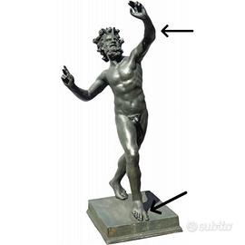 riproduzione del SATIRO DANZANTE ,statua ritrovata a POMPEI ,in teca base legno e di vetro,la statuina in materiale ceramico rivestito ,presenta leggero smusso ,rimodellato come indicato da foto.comprato a pompei anno 1974.molto originale,misure satiro h 17'5xbase 8. SPEDIZIONE TUTTOSUBITO.