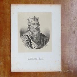 Lotto di 73 litografie originali ottocentesche relative ai capi di Casa Savoia (conti duchi re) il maggior numero di esse, 65, è tratta dalla serie di Garino Natta, Jacquier e C. editori. Presentano tutte (qualcuna più, qualcuna altra meno) foxing e segni di polvere. Dimensioni varie: da cm 28 X 20 circa a cm 26,20 X 19,50 circa. Soggetti ripetuti, sia pure con differenze (presenza del nome di incisore e litografia, dimensioni, colori dello sfondo): Beroldo (2); Umberto I (3); Oddone (2); Pietro I (4); Amedeo II (2); Umberto II (1); Amedeo III (2); Umberto III (2); Tomaso I (2); Amedeo IV (2); Bonifacio (2); Pietro II (2); Filippo I (4); Amedeo V (3); Edoardo (2); Aimone (2); Amedeo VI (2); Amedeo VII (2); Lodovico (3); Amedeo IX (1); Filiberto I (2); Carlo I (2); Carlo II (2); Filippo II (4); Filiberto II (2); Carlo III (2); Emanuel Filiberto (1); Vittorio Amedeo I (2); Carlo Emanuele III (1); Vittorio Amedeo III (1); Carlo Emanuele IV (1). Unite: Mort du Prince de Piemont; La benediction; Emmanuel et les Paysans; Jacqueline (bis); Emanuele Filiberto; Marchese! io commetto alla vostra fede il pegno più prezioso ch’io m’abbia; Carlo Alberto; Amedee V. Foxing e difetti vari, la litografia con Carlo Alberto presenta difetti pesanti (mancanze che interessano anche il ritratto). Dimensioni da cm 25,50 X 17 circa a cm 27,70 X 20,90 circa.