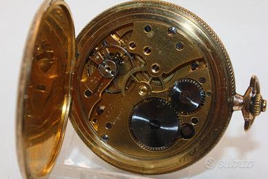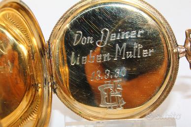 Presentiamo un autentico gioiello di eleganza e raffinatezza: un orologio da tasca Savonette "Zentra" in Gold Double, accompagnato da una catena dorata doppia della stessa epoca. Con un diametro di 52 mm e un peso di 84,7 grammi, questo orologio rappresenta lusso e precisione. Il quadrante color champagne, decorato con numeri arabi dorati, offre una leggibilità impeccabile e un fascino senza tempo. La catena dorata doppia, con una lunghezza di 46 cm. peso 15,8 grammi completa il set con un tocco di classe e autenticità. Ideale per collezionisti e amatori dell'orologeria di alta classe, questo pezzo esclusivo non è solo un indicatore del tempo, ma un simbolo di stile e prestigio. Aggiungi un tocco di storia e lusso alla tua collezione con questo straordinario orologio da tasca e la sua catena abbinata. Perfettamente funzionante