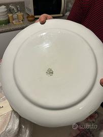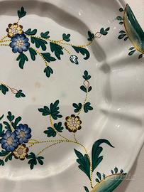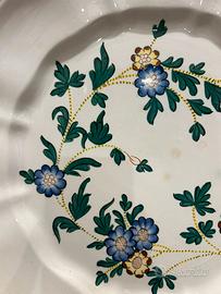 Piatto “centrinato” con bordo sagomato e smerlato. Dipinto a mano con motivo floreale. Epoca di riferimento 1873 -1896. Diametro cm 35