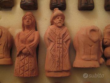 Gli scacchi sono contenuti in una scatola di cartone con l'interno in gommapiuma sagomata per i singoli pezzi. Sulla scatola, acquistata 30 anni fa in una fabbrica turca di Avanos, c'è scritto "SERAMIK SATRANC TAKIMII". Non ha una scacchiera. L'altezza dei pezzi varia dai 5 cm agli 8 cm circa. Non sono mai stati utilizzati