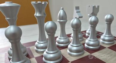 vendo solo pezzi scacchi senza base. prezzo di 350 euro... Fatti in alluminio con trattamento di anodizzazione bianco e nera. base pezzi scacchi 30mm