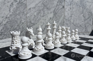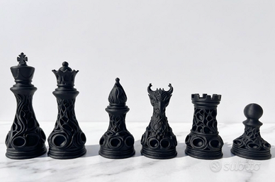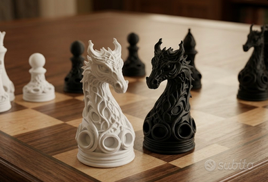 🐉 DESIGN ESCLUSIVO CON DRAGHI: Il cavallo è scolpito come un drago ultra-dettagliato, rendendo ogni mossa leggendaria. 🎭 STILE BAROCCO E GOTICO: Ogni pezzo (Re, Regina, Alfieri, Torri e Pedoni) presenta complessi motivi traforati che creano spettacolari giochi di luci e ombre. ⚪⚫ CONTRASTO DECISO: Set completo da 32 pezzi nei classici colori bianco e nero, perfetto per scacchiere moderne. 💎 DETTAGLI MAGISTRALI: Le texture realizzate con precisione rendono ogni pezzo un piacere da maneggiare e una meraviglia da esporre. 🎁 REGALO DI PRESTIGIO: Il dono definitivo per scacchisti, amanti del design e collezionisti