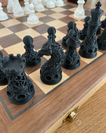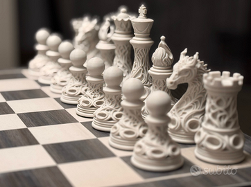 🐉 DESIGN ESCLUSIVO CON DRAGHI: Il cavallo è scolpito come un drago ultra-dettagliato, rendendo ogni mossa leggendaria. 🎭 STILE BAROCCO E GOTICO: Ogni pezzo (Re, Regina, Alfieri, Torri e Pedoni) presenta complessi motivi traforati che creano spettacolari giochi di luci e ombre. ⚪⚫ CONTRASTO DECISO: Set completo da 32 pezzi nei classici colori bianco e nero, perfetto per scacchiere moderne. 💎 DETTAGLI MAGISTRALI: Le texture realizzate con precisione rendono ogni pezzo un piacere da maneggiare e una meraviglia da esporre. 🎁 REGALO DI PRESTIGIO: Il dono definitivo per scacchisti, amanti del design e collezionisti