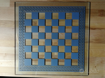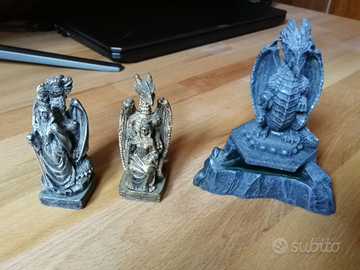 Vendo scacchi draghi in resina colore bronzo argento, con scacchiera in vetro e supporti torretta. Gli scacchi sono completi, compresi tutti i pezzi in perfette condizioni così come anche la scacchiera.