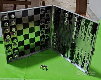 set da viaggio magnetico 2 in 1, che include sia gli scacchi che il backgammon