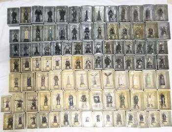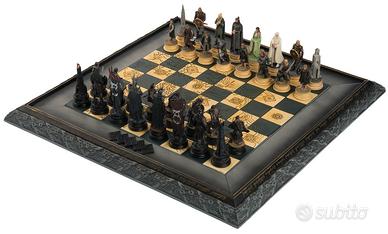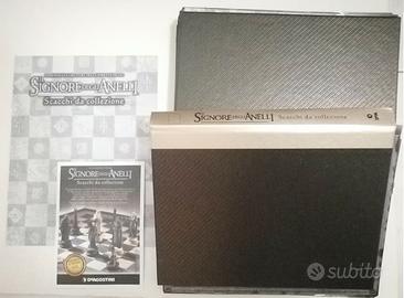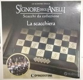 Vendo la mia Collezione Il Signore degli Anelli (The Lord of the Rings). È un’opera esclusiva distribuita in Italia da De Agostini Editore. Ciascun elemento degli scacchi ispirati al Signore degli Anelli è stato creato a mano dall’artista Toby Whiting, e ritrae nei minimi dettagli i principali protagonisti del conflitto finale tra Bene e Male, in cui viene decisa la sorte della Terra di Mezzo. Ogni personaggio è esclusivo della scacchiera con un fascicolo documentatissimo, che presenta una descrizione dettagliata del personaggio riprodotto dal pezzo della scacchiera: la scheda del protagonista e il suo ruolo nella Guerra dell’Anello, una panoramica sulla sua stirpe, i suoi alleati e i suoi nemici, le scene salienti in cui appare nei film, e informazioni specifiche sulle vesti e sulle armi; ma anche immagini esclusive e citazioni dalla sceneggiatura dei film. Sul piano tecnico, il fascicolo spiega le caratteristiche e il ruolo di ogni pezzo allegato, e presenta brevi nozioni sulle strategie di gioco, e informazioni sull’evoluzione degli scacchi nei secoli e le diverse varianti del gioco apparse in tutto il mondo.