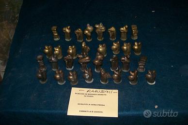 scacchi in bronzo dorato colati a cera persa e firmati damien rarissimi per collezzionisti