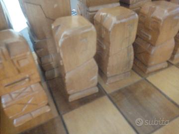 SCACCHI IN LEGNO INTAGLIATI A MANO. BASE SCACCHI CM. 5X5 ALTEZZA CM.14....RE E REGINA ALTEZZA CM. 15 BASE PEDONI CM. 4X4 ALTEZZA CM. 9