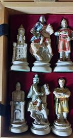 set scacchi verosimilmente in vetroresina in convenzione in legno. altezza pezzi da 8 a 10 cm. nuovo mai usati. no scacchiera. solo ritiro in zona.