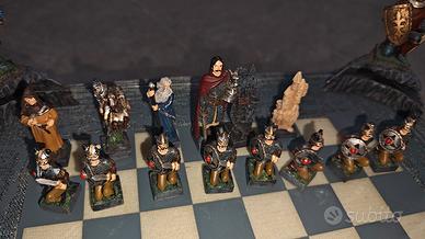 Scacchi di Re Artù ,base 50 per 50 in vetro e Statuette in Resina dipinte a mano..Usata poco ma bella mancano due Statuette...