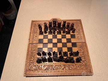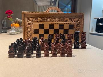 Splendido set da scacchi, interamente realizzato e rifinito a mano da maestri artigiani, di origine indonesiana (Bali).