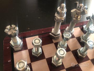 Scacchiera con base e pedine artigianali fatte a mano con scatola in legno ……