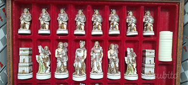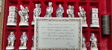 Scacchiera da collezione con personaggi dipinti a mano e pedine aggiuntive per il giocare della Dama. Con scatola originale