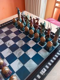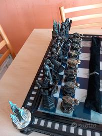 Scacchiera completa con doppio set di pedine ,libri corso per scacchi alcuni ancora da rilegare