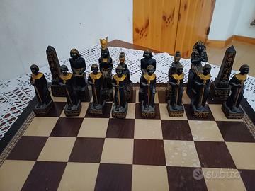 scacchiera con scacchi antichi egizi da collezione misure scacchiera cm 42x42 altezza statuette cm 12