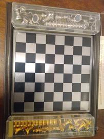 Scacchiera magnetica da viaggio Dal Negro vintage cm 19x14, pezzi scacchi e pedine dama in metallo calamitati, (SP 14.2.26)