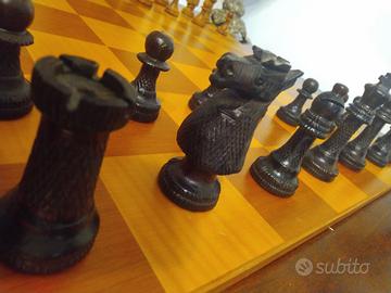 Scacchiera Dal Negro in legno vintage in legnocm- 60x60, pezzi in legno cm. 9,5 H S22.6.25
