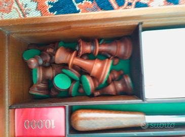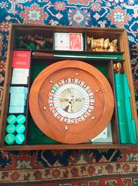 Vendo scacchiera Del Negro - conservata perfettamente con tutti i pezzi originali e le carte da Poker ancora imballate. É molto grande 52 cm x 52 cm. Tappeto da roulette mai usato. NON TRATTABILE.