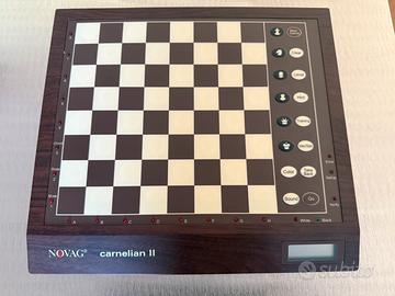 Splendida scacchiera elettronica NOVAG Carnelian II perfettamente funzionante. Alimentatore non presente, funziona con 6 batterie stilo incluse. Pezzi in legno magnetici (vedi foto) Fornisco manuale di istruzioni in italiano e regalo libro “Il grande libro degli scacchi”.