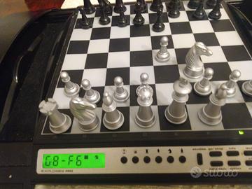 Scacchiera Elettronica Mephisto Saitek Explorer Pro,vintage in ottimo stato funzionante, con alimentatore universale 9 v. (non incluso) o batterie alkaline (non incluse) pezzi scacchi originali magnetici 32 b/n integri.