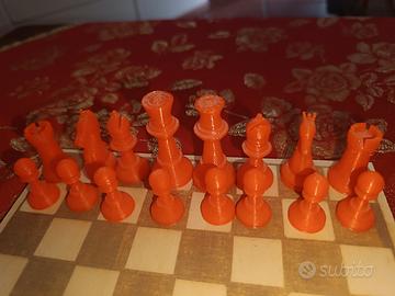 Scacchiera composta da base in legno 20X20 e scacchi fatti con la stampante 3D.