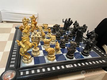 Si vende bellissima scacchiera di Harry Potter della De Agostini con tutti i pezzi, alcune pedine hanno piccoli difetti come alcuni bianchi ingialliti(basta lavare/trattare) ed alcune parte aperte ma si possono incollare come già viene fatto dí fabbrica. La scacchiera è completa di tutti gli stemmi delle case. Pulsanti funzionanti perché poco utilizzata. Si accettano offerte e si può ritirare a Mestre Venezia.