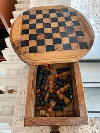Vendo piccola scacchiera in legno x amatori abbastanza datata probabile pezzo unico completa di tutti i pezzi ovviamente utilizzabile o da ornamento
