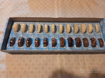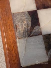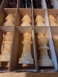 L' alabastro, come elemento naturale risente del peso degli anni ed alcune caselle della scacchiera sono deteriorate come da foto ed alcune pedine sono leggermente scalfite, a conferma del materiale .