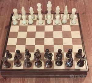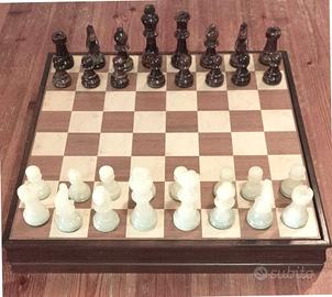 Vendo elegante scacchiera artigianale in pietra, con pezzi finemente lavorati a mano. Le dimensioni complessive sono 38 x 38 x 6 cm. Ogni pezzo è realizzato con dettagli curati che rendono il set unico e ideale sia per il gioco che come elemento decorativo. La base è solida e levigata, con un design elegante che valorizza i colori naturali del materiale. Perfetta come idea regalo o per collezionisti e appassionati di scacchi. Condizioni: Buonissime, ha qualche leggero segno del tempo. Prezzo: €40 Ritiro a mano o spedizione a carico dell’acquirente. Contattami per ulteriori foto o informazioni.