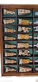 Scacchiera in legno 47,5cmx47,5cmx6cm, le pedine in polystone sono in stile "Cina imperiale" alte circa 9cm, marca "DAL NEGRO"