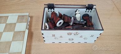 scacchiera con pedine in legno fatti a mano, scatola con pedine da scacchi 25€ scacchiera con pedine x dama 25€ se acquistati insieme 40€ non spedisco solo ritiro a mano ho anche altre scatole in legno diverse misure