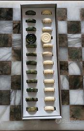 Scacchiera da tavolo in marmo bianco e onice verde in finitura lucida.