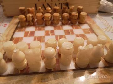 Scacchiera in marmo in ottime condizioni 25x25. Pezzi lavorati a mano. Movimenti incastonati in marmo stupendi.