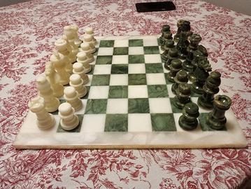 scacchiera in pietra dura ( marmo o onice o alabastro) completa.