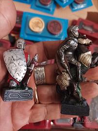 4 CAVALIERI che reggono la scacchiera,ognuno in un angolo.