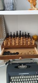 Scacchiera legno con pedine in legno. molto particolare. Disponibile per altre info