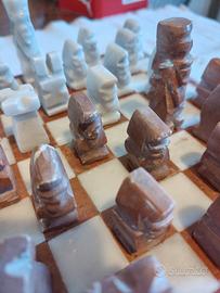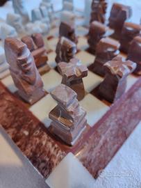 Scacchiera in marmo realizzata a mano, bellissimi colori cangianti.