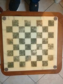 Scacchiera "onice" con pedine per gioco a Scacchi stesso materiale! Non usata, ma ha un piccolo smusso su un angolo. Io so giocare a scacchiera e ho partecipato a diversi Tornei.