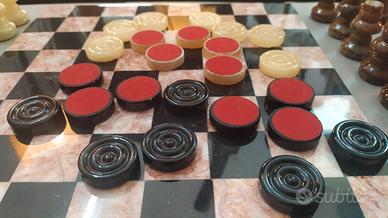 STUPENDA SCACCHIERA IN MARMO CON SCACCHI E PEDINE DELLA DAMA IN MARMO.