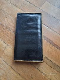 Simpatica scacchiera vintage rifinita in pelle nera (vera!) e ornamenti in ottone DIMENSIONI cm 20x18x1,3h