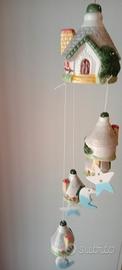 Vendo delizioso scacciapensieri (carillon a vento) in ceramica dipinta a mano, raffigurante i tipici trulli pugliesi con decorazioni a tema lune e stelle.