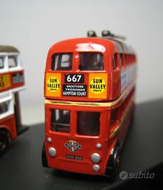 Vendo un RARO set di modelli di bus londinesi, marca OXFORD e in scala 1:148, che celebra l'evoluzione nel tempo del tipico e celebre autobus a doppio piano della capitale inglese.