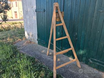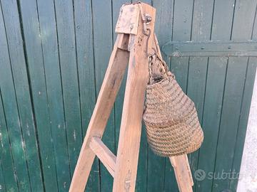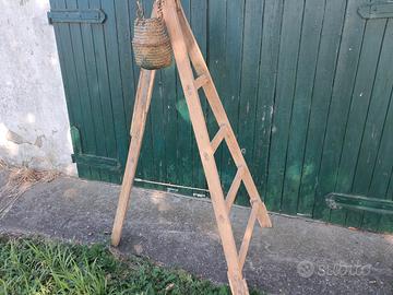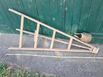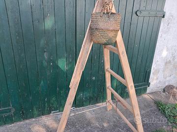 scala vecchia in legno della civiltà contadina di forma triangolare con 4 gradini, è stata ripulita, levigata e sistemata, misura di larghezza alla base cm.85 x 180 di altezza max., profondità con piede aperto cm.120, volendo può essere ancora usata, vendo a euro 75, ritiro e trasporto a carico del compratore