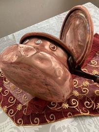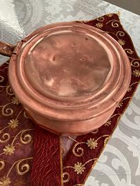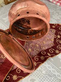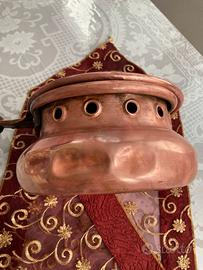Vendo antico scaldaletto in rame (contenitore per brace) tenuto in ottimo stato con visibili segni del tempo e utilizzo.