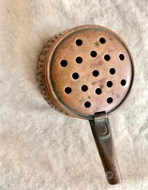 Antico e introvabile scaldino porta braciere in rame, per cuscini ….cm10 di larghezza il compreso il manico, alto cm5 e diametro cm6. Raro da collezione per le minute dimensioni.