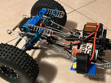 Scaler Crawler 1/10 base axial, passo 313. Telaio in policarbonato 4mm, ponti in metallo con overdrive 30% all’anteriore,riser link sul posteriore, servo da 35kg in metallo , cerchi in metallo e gomme morbide multipin, skid piatta e link angolari con riser sul posteriore. Esc Spektrum con dragbrake selezionabile e alimentazione da 2-3s o nimh , motore brushed . Completa di carrozza Montech. Modello molto performante e divertente. Esclusa radio. Preferibile ritiro a mano, spese spedizione escluse